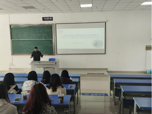 于2024年10月25日下午在530室举办了宣讲会,邀请了永康市久久太阳电子商务有限公司总经理郎伟建作宣讲。2025届全体毕业生及班主任参加了招聘会。