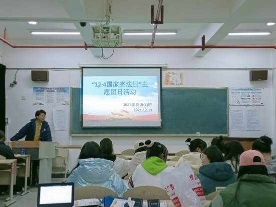 各班团支书积极响应并组织班上同学一起学习了习近平总书记关于宪法的重要论述精神。各团支部通过PPT讲解和观看普法微电影带领同学们回顾了新中国的立法史,了解了中国宪法的变迁,以及宪法所确立的国家根本制度、根本任务、基本原则、活动准则和习近平法治思想等内容,以此加强同学们牢固树立宪法的意识,增强法治观念,使同学们更加自觉地去学习宪法,弘扬宪法精神,维护宪法尊严、共同保障宪法实施。此次主题团日活动,增强了团员青年对宪法的认识和对法律的尊崇,营造了尊法、学法、守法、用法的氛围,也为推进建设法治和谐校园奠定了良好的基础。主题团日活动结束后广大青年学生纷纷表示,要自觉遵守国家法律,从身边的小事做起,做一名知法、懂法、会用法的新时代大学生。