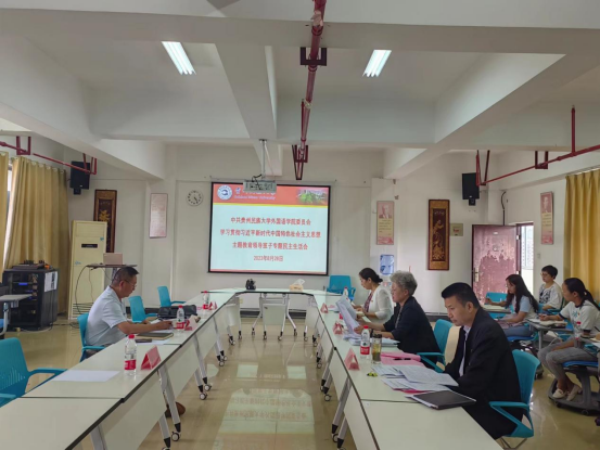 党委班子成员肖唐金、禄颖两位同志依次进行对照检查、作自我批评,其他班子成员逐一对其提出批评意见;五是学校主题教育第二指导组组长、校党委统战部副部长刘吉昌同志作点评讲话;六是学院党委书记卢文芸同志作表态发言。