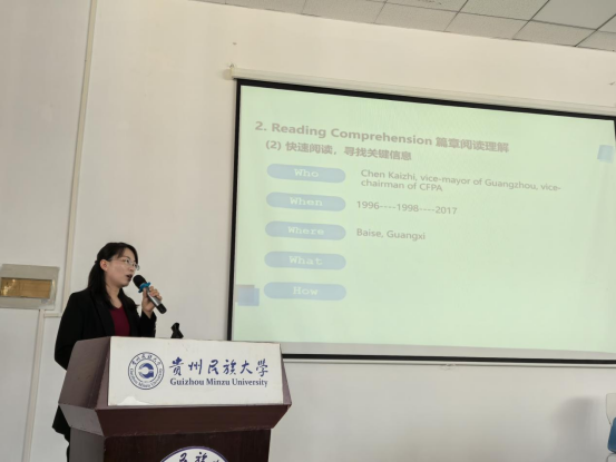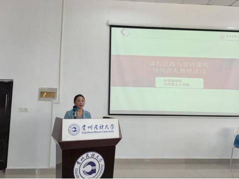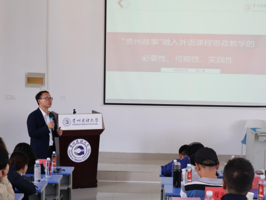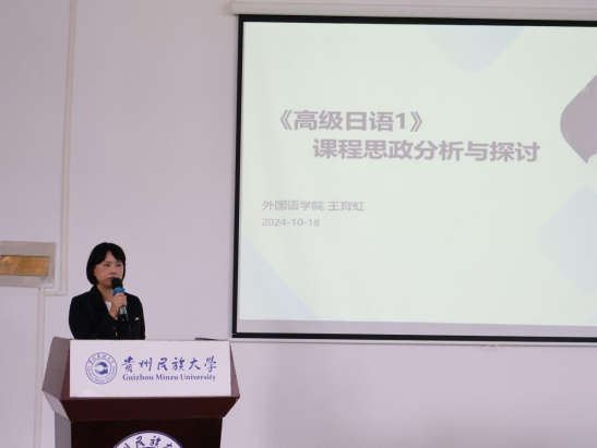 朱颖、杜晖、王育虹、杨筱松老师分别围绕《综合英语》《大学英语》《高级日语》《少数民族文化英译》等介绍课程思政教学开展情况;张广勇院长以“贵州故事”融入外语课程思政教学的必要性、可能性和实践性为题,总结金瓶梅