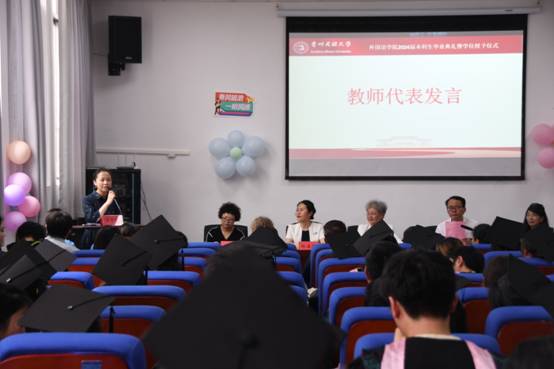 党委书记卢文芸、院长张广勇、党委副书记杨泰黔、副院长禄颖、副院长赵艳、正处级组织员韦光明出席活动,学院全体专业教师及2024届全体毕业生参加典礼。