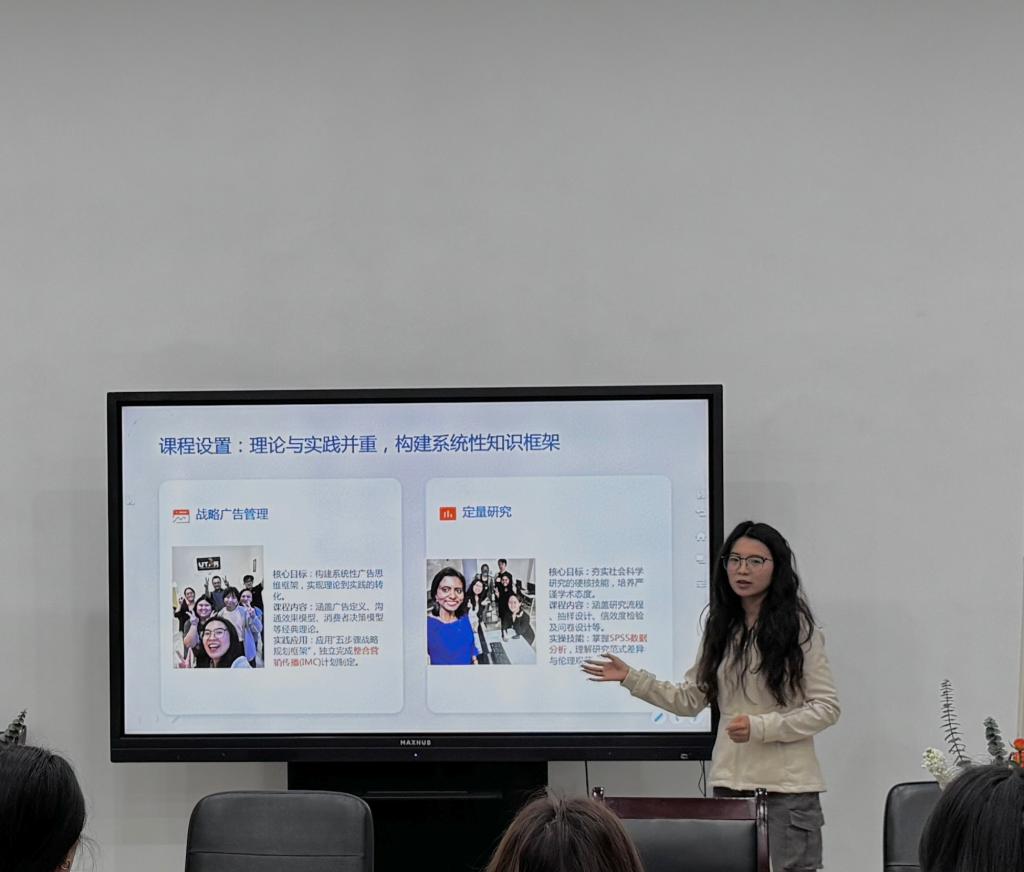 吴光倩详细介绍了拉曼大学的办学特色、学科优势及交换项目的申请流程,从信息获取、材料准备、面试技巧到签证办理,为在场同学提供了清晰的操作指引。张仪则结合自身在拉曼大学的课堂学习与跨文化体验,分享了小班教学、案例研讨、多元考核等教学模式带来的学习转变,强调了从“应试英语”到“应用英语”的能力跃升,以及在多元文化环境中增强文化自信、拓展国际视野的深刻感悟。