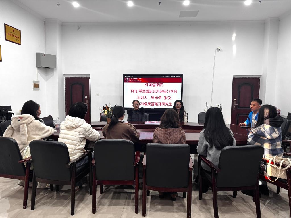 正处级组织员兼党委副书记杨泰黔出席分享会。2023级、2024级、2025级英语笔译硕士研究生参加。
