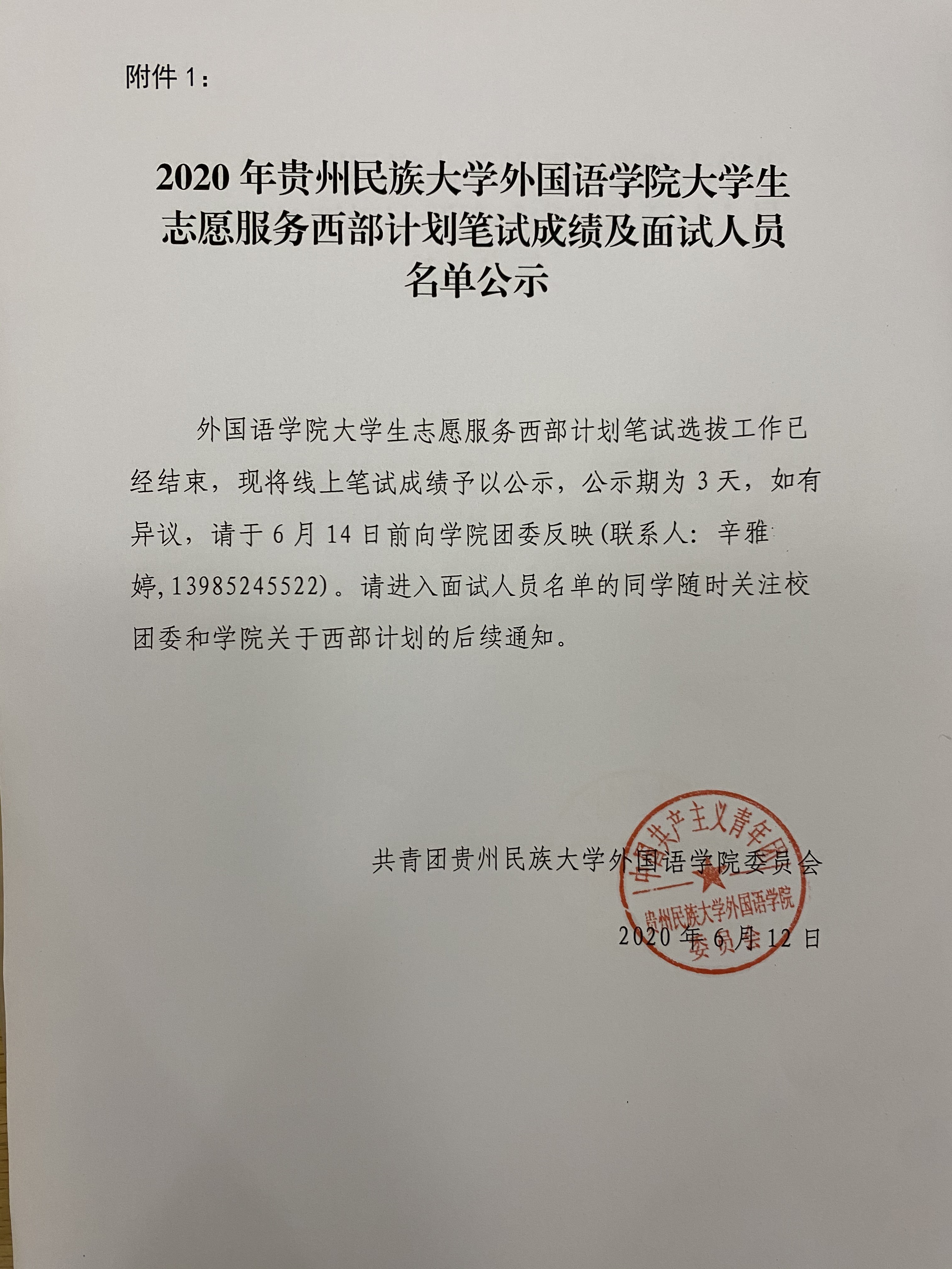 2020年 金瓶梅 大学生志愿服务西部计划笔试成绩及面试人员名单公示