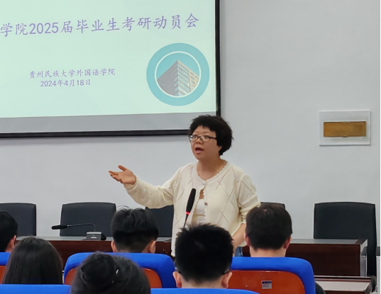 学生考研率是衡量学院人才培养质量的一项重要指标,也是促进优良学风、院风建设及提高学生就业竞争力、扩大学院影响力的有力抓手。为营造浓厚的考研氛围,切实加强对学生考研的指导与服务,提高学院考研的数量和质量,有力助推学院高质量发展,外国语学院于2024年4月18日晚上18:00在北校区金瓶梅