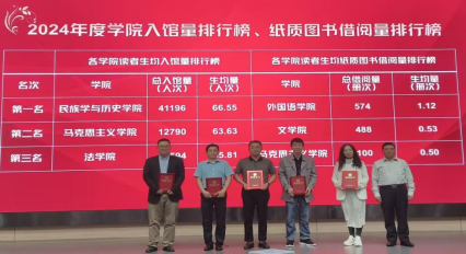 积极响应学校号召,激发师生阅读热情,营造了浓厚的书香氛围,在“2024年度各学院读者生均纸质图书借阅量”评比中荣登全校第一。外国语学院副院长禄颖出席“读书日”活动并代表学院领奖。