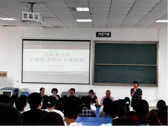 英语系主任牛敏副教授和日语系主任王育虹副教授分别结合两个专业进行课程设置介绍和学业规划指导。牛敏主任重点围绕专业课程体系、师资团队以及就业前景等方面展开,强调英语专业注重培养学生的语言应用与跨文化交际能力;日语系主任王育虹着重介绍了日语专业特色,如丰富的实践交流项目、与日本高校的合作等,让新生对专业有了更清晰的认知。